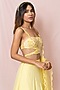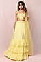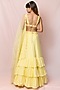 Featuring a light yellow layered lehenga in flat chiffon base. It is paired with a matching silk blouse having having hand embroidery and an organza dupatta.