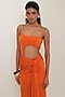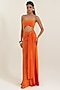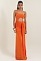 Featuring an orange gown in malai lycra base with asymmetric neckline, side cut-out and knotted draping details. Accentuate it with statement jewellery and heels for evening events, upscale dinners or a sophisticated gathering.