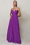 Featuring a purple hand pleated gown in crepe base with a halter neckline and back tie-up.