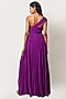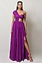 Featuring a purple hand pleated gown in flat chiffon base with a slit.