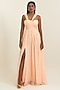 Featuring a soft peach gown in flat chiffon base with ruched bodice and asymmetrical draped straps. Accentuate it with statement earrings and heels for a graceful look, perfect for festive gatherings or sangeet ceremony.