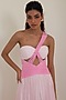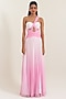 Featuring a soft pink shaded hand-draped gown in flat chiffon base with criss-cross neckline, keyhole cut-out, sculpted bodice and pleated waist. Accentuate it with statement jewellery and heels for evening events, upscale dinners or a sophisticated gathering.