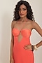 Featuring a sunset coral hand draped gown in satin georgette base with a halter neckline and a plunge cut-out detail. Accentuate it with pearl jewellery, heels and an embellished clutch for a cocktail, reception or a red-carpet event.