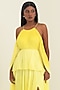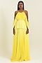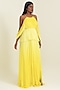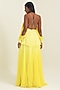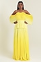 Featuring a yellow gown in flat chiffon base with draped off-shoulder sleeves. Accentuate it with statement earrings and heels for a graceful look, perfect for festive gatherings or sangeet ceremony.