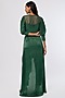 Featuring a hunter green tunic in satin chiffon, crepe, and net base with cutdana handwork. It is paired with matching pants and a belt draped flap frill half skirt.