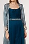 Featuring a teal blue reverse pleated jumpsuit in satin chiffon base. It is paired with a matching A-line jacket having jhil print, zig zag dori and a belt.