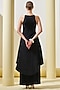 Featuring a black peplum gown in crepe base with pleat detailing.