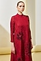 Featuring a maroon high-neck dress in pleated polyester base with floral detailing.