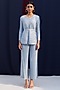 Featuring a powder blue metallic pleated top in pleated polyester base. It is paired with a matching belt and metallic pleated culotte pants.