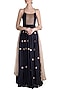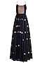 Featuring a dark blue cross back anarkali gown in pure silk base with zardosi hand embroidery. It is paired with matching dupatta.