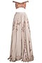 Featuring an ivory lehenga skirt in silk and pure georgette base with butterfly embroidery. It is paired with a contrasting orange blouse and blue checkered dupatta.