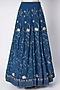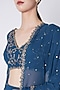Featuring a persian blue lehenga in kasturi crepe base with zardosi jaal embroidery. It is paired with a matching georgette blouse having churidar sleeves and dupatta in badla crepe base.