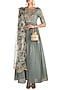 Featuring an aqua blue anarkali for girls in crepe and organza base with gota embroidery. It is paired with a matching printed dupatta.