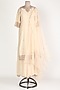 Featuring an off-white tunic for girls in chanderi base with zardosi embroidery. It is paired with matching palazzo pants and a dupatta.