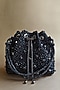 Featuring a black bucket bag in vegan suede base with austrian crystals and rhinestone hand embellishments. It has cotton underlining.