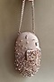 Featuring a gold capsule clutch in suede base with crystal and glass bead hand embellishments. It has a cotton lining. The capsule bag can be carried as a clutch or around your wrist. A perfect accessory to carry all your evening essentials.