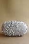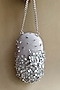 Featuring a silver grey capsule clutch in suede base with crystal and glass bead hand embellishments. It has a cotton lining. The capsule bag can be carried as a clutch or around your wrist. A perfect accessory to carry all your evening essentials.
