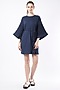 Featuring a navy blue robe dress in jersey base with flared sleeves. It is paired with a belt.