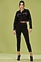 Featuring a black cropped jacket in ponte base with placket, flap pockets and thread hand embroidery.