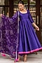 Featuring a blue anarkali in taffeta silk base. It is paired with pants and a georgette leheriya dupatta. Accentuate it with dangler earrings and mules for festive occasions, daytime functions or pooja ceremony.