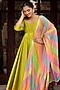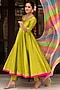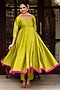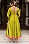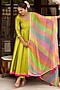 Featuring a green anarkali in taffeta silk base. It is paired with pants and a georgette leheriya dupatta. Accentuate it with dangler earrings and mules for festive occasions, daytime functions or pooja ceremony.