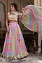 Featuring a multi-colored leheriya lehenga in georgette base. It is paired with a blouse and a dupatta. Style it with kundan polki jewellery, a potli bag and block heels for an elegant look. Perfect for weddings, sangeet or engagement ceremonies.