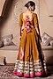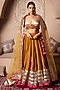 Featuring a mustard yellow lehenga in velvet base with gota patti embroidery. It is paired with a blouse and a soft net dupatta. Accentuate it with statement jewellery and heels for a wedding or engagement ceremony.