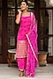 Featuring a pink bandhej kurta in georgette base. It is paired with taffeta silk pants and a dupatta. Style it with kundan polki earrings, a potli bag and kolhapuri block heels for an elegant look. Perfect for festive occasions or sangeet ceremonies.