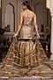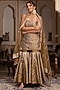 Featuring a dust gold kurta in taffeta silk base with gota-patti detailing. It is paired with sharara pants and a soft net dupatta. Style it with kundan polki earrings, a potli bag and kolhapuri block heels for an elegant look. Perfect for festive occasions or sangeet ceremonies.