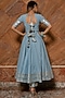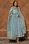 Featuring a powder blue anarkali in pure cotton base with gota embroidery. It is paired with matching pants and an organza dupatta.