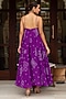 Featuring a purple dress in georgette base with bandhej print. Accentuate it with dangler earrings and block heels for festive occasions, daytime functions or pooja ceremony.