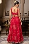 Featuring a red bandhej lehenga in georgette base. It is paired with a blouse and a dupatta. Style it with kundan polki jewellery, a potli bag and block heels for an elegant look. Perfect for weddings, sangeet or engagement ceremonies.