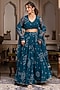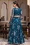 Featuring a teal bandhej lehenga in georgette base. It is paired with a blouse and a dupatta. Style it with kundan polki jewellery, a potli bag and block heels for an elegant look. Perfect for weddings, sangeet or engagement ceremonies.