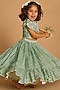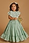 Featuring a powder blue blouse for girls in viscose silk base with floral embroidery. It is paired with a frilled lehenga. Style it with cute hair accessories and sandals for a festive occasion or sangeet ceremony.