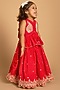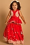Featuring a red peplum-style blouse for girls in viscose muslin base with tie-up detail and abla embroidery. It is paired with an embroidered lehenga having an elasticated waistband. Style it with cute hair accessories and sandals for a festive occasion or sangeet ceremony.