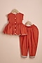 Featuring a rust orange kurta in viscose silk base with embroidery. It is paired with dhoti pants. Accessorize it with matching hair accessories and sandals for a stylish ensemble, ideal for any birthday party.