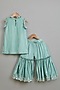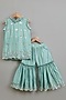 Featuring a sea green kurta for girls in viscose silk base with embroidery. It is paired with sharara pants. Style it with sandals and hair accessories for festive occasions.
