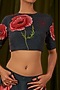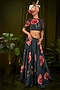 Featuring a navy blue top in upada silk base with floral print, chid and thread embellishment.