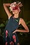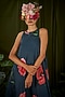 Featuring a navy blue handkerchief dress in upada silk base with print.