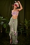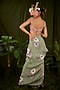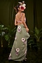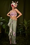 Featuring a purple bustier top in raw silk base with cutout back and floral embellishments.