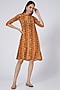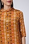 Featuring a yellow tunic in natural crepe base with bias collar and geometric print.