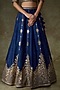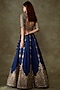 Featuring a blue lehenga in raw silk base with aari embroidery. It is paired with a matching blouse and an organza embroidered dupatta.