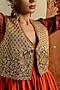 Brown Cotton Silk Aari Embroidered Jacket