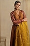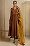 Featuring a brown anarkali in cotton silk. It is paired with palazzo pants. Accentuate it with dangler earrings and mojaris for a festive occasion or family gathering.