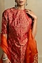 Featuring an orange dupatta in organza base with aari embroidery. Style it with a kurta, statement jewellery and heels for festive occasions.