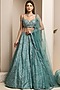 Blue-Green Embroidered Lehenga Set