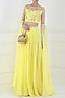 Lemon Yellow Embroidered Cape Sleeves Crop Top with Lehenga Skirt