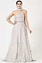 Subtle yet regal, for brides seeking grandeur, introducing our light blue silk taffeta corset gown highlighted with crystal and sequins hand embellishments. Paired with a hand embroidered tulle dupatta.