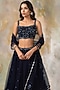 Featuring a midnight blue lehenga in georgette and net base with aari sequins, cutdana, crystals and bead embellishments, including a cancan. It is paired with a matching cutwork blouse and a tulle embellished dupatta