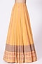 Featuring an apricot orange lehenga in georgette base with geometric sequins and cutdana hand embroidery including block print. It is paired with a matching blouse and an organza dupatta.